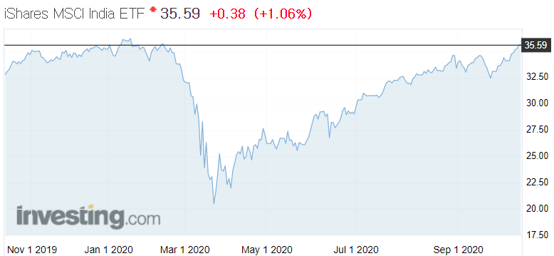 INDA의 코로나 저점 대비 47%의 수익률을 보이고 있습니다.