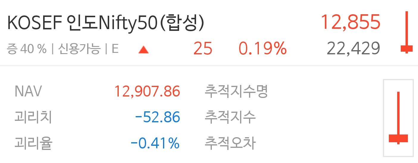 수수료 면에서는 Kosef 인도 nifty 50(합성)(0.52%)가 조금 유리해 보입니다.